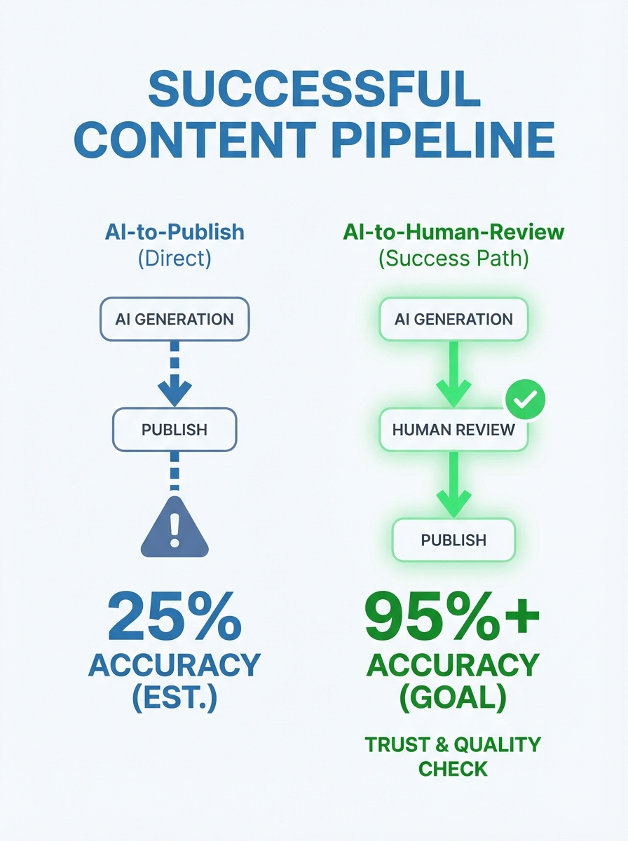 The distinction matters enormously. I have sites running AI-assisted workflows where every piece goes through a subject matter expert for review, fact-checking, and the addition of original perspective. Those sites performed fine. In some cases, they gained ground.